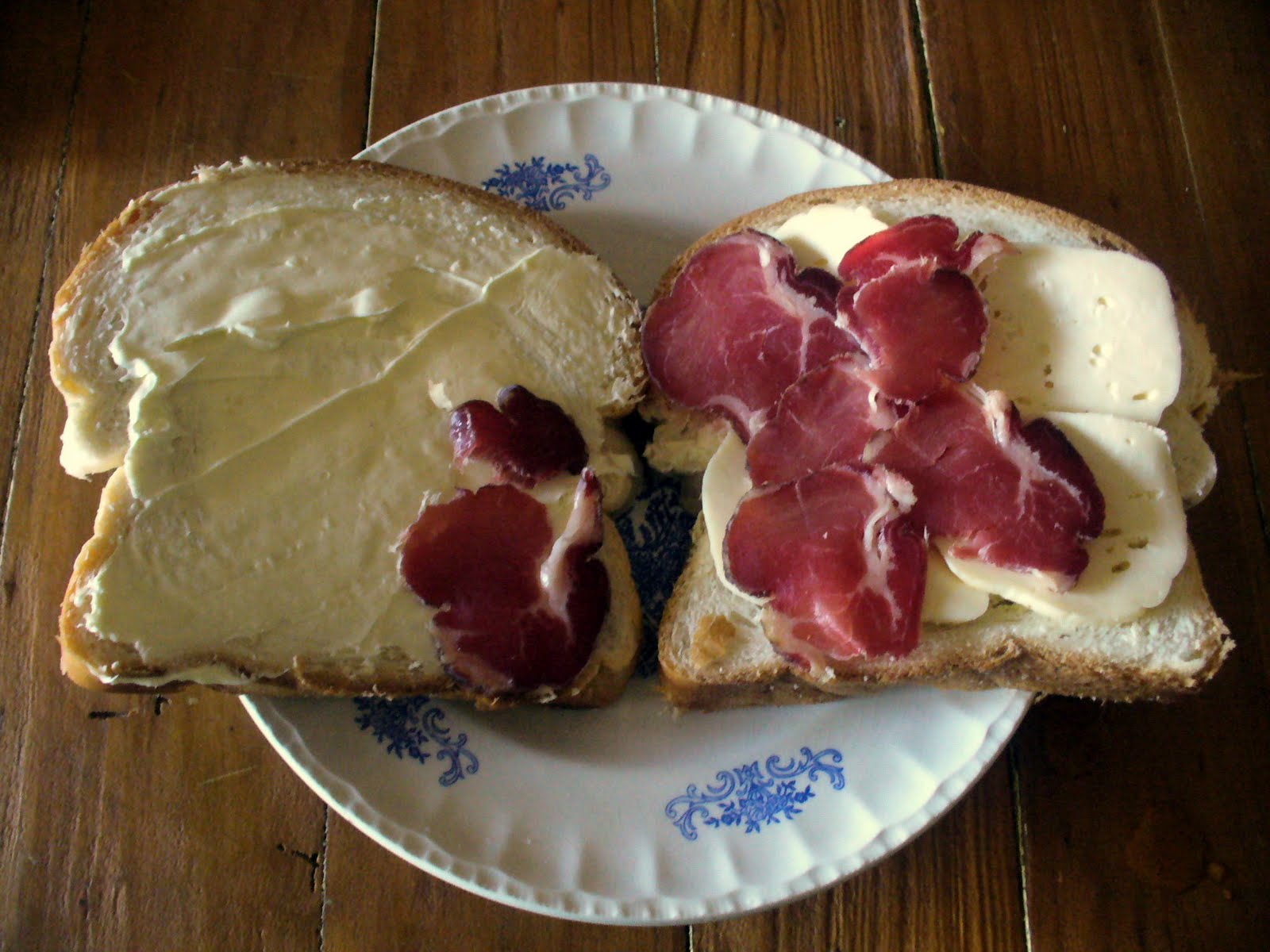 Talvez os não-gaúchos achem interessante ver um sanduíche típico dessas bandas. O pão é caseiro, feito em forno a lenha, na rua. O queijo, também feito em casa, nós chamamos de colonial. A nata é a gordura sobrenadante do leite puro, que é vendida em potes, como margarina. O embutido se chama copa, e é feito com o lombo do porco. O prato raso de jantar, sob o sanduíche, dá uma medida do tamanho descomunal do lanche.